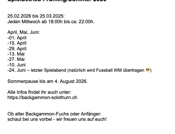 Bis Ende März 2026 finden die Spielabende wie folgt statt: